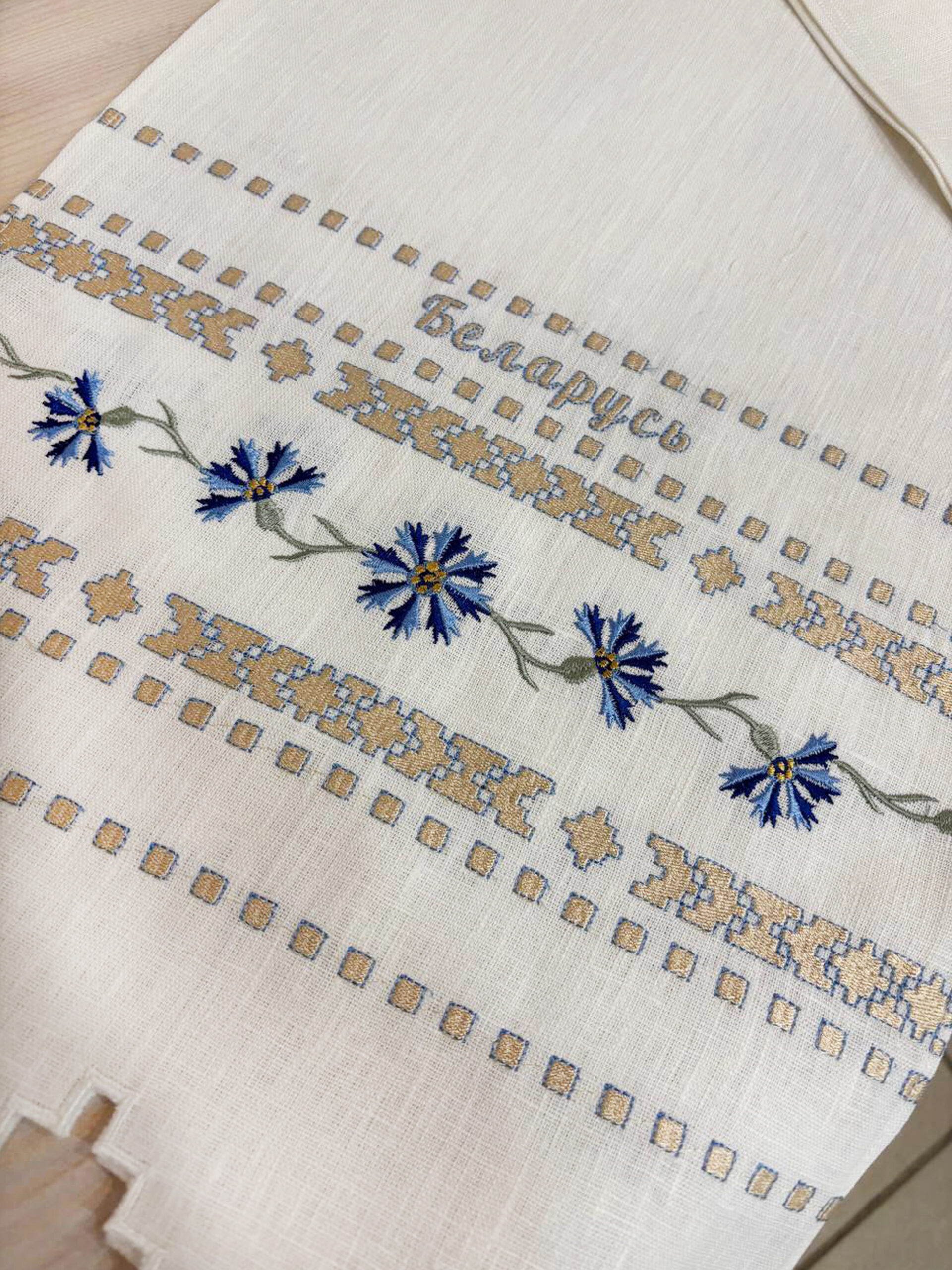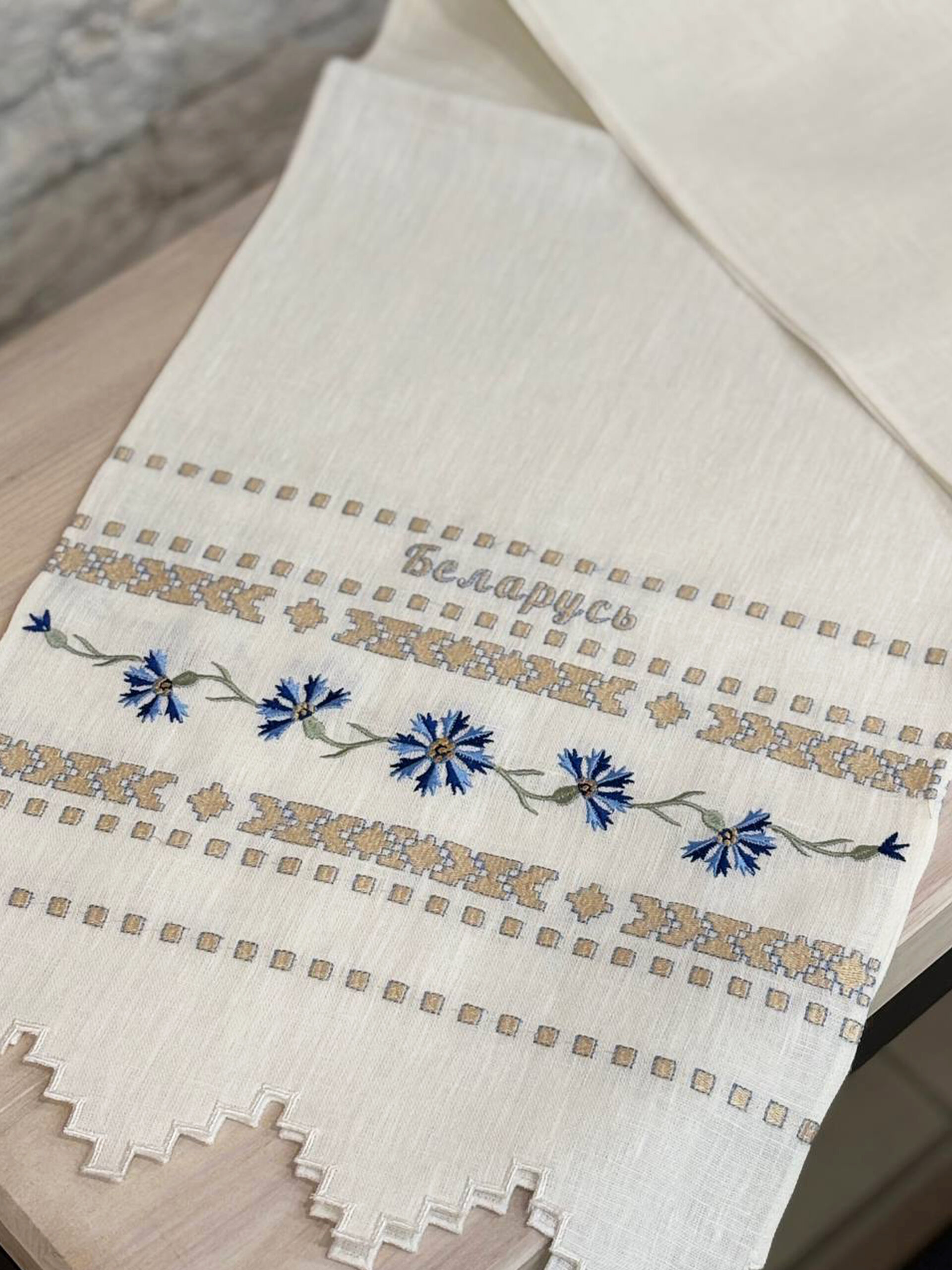 Комплект выполнен на белом льне в нежной пастельной гамме. Цветовые нюансы делают его свежим и уютным.