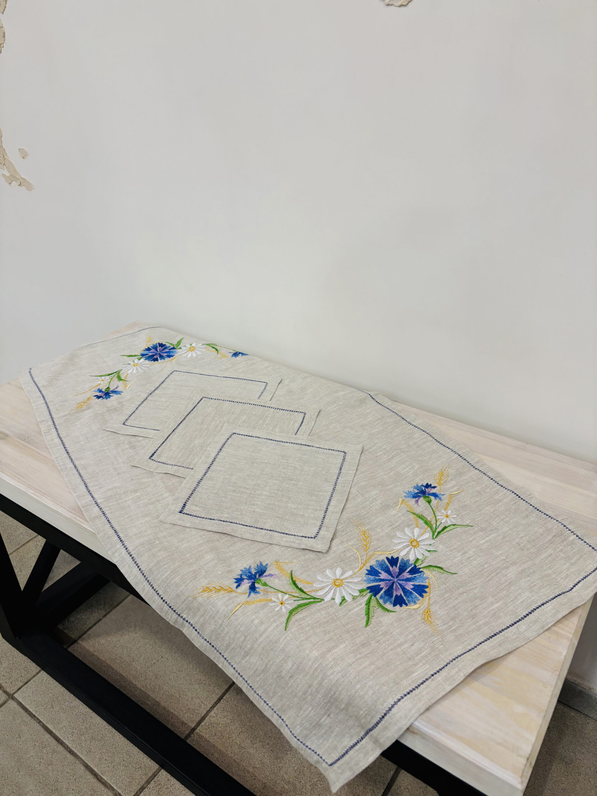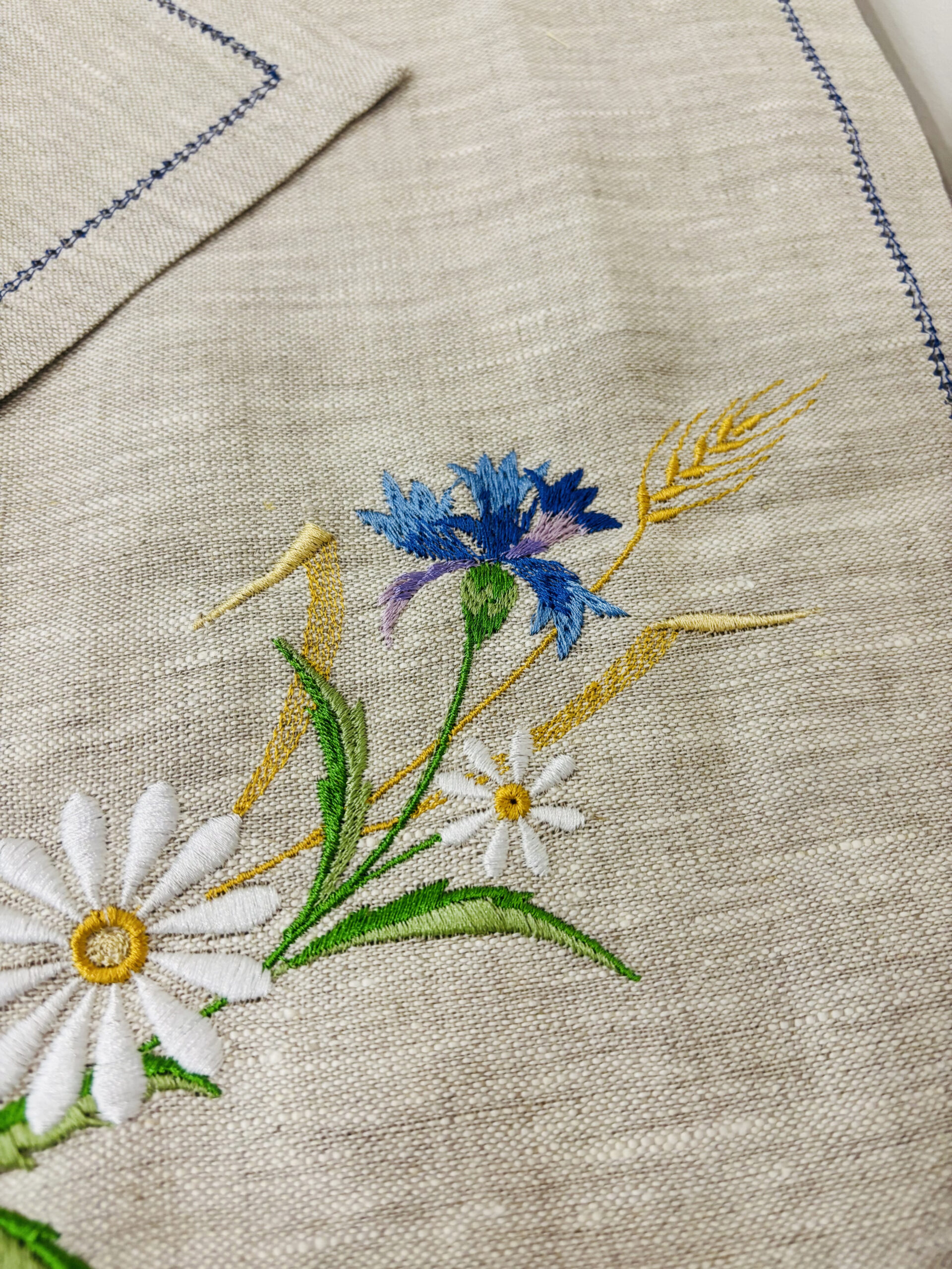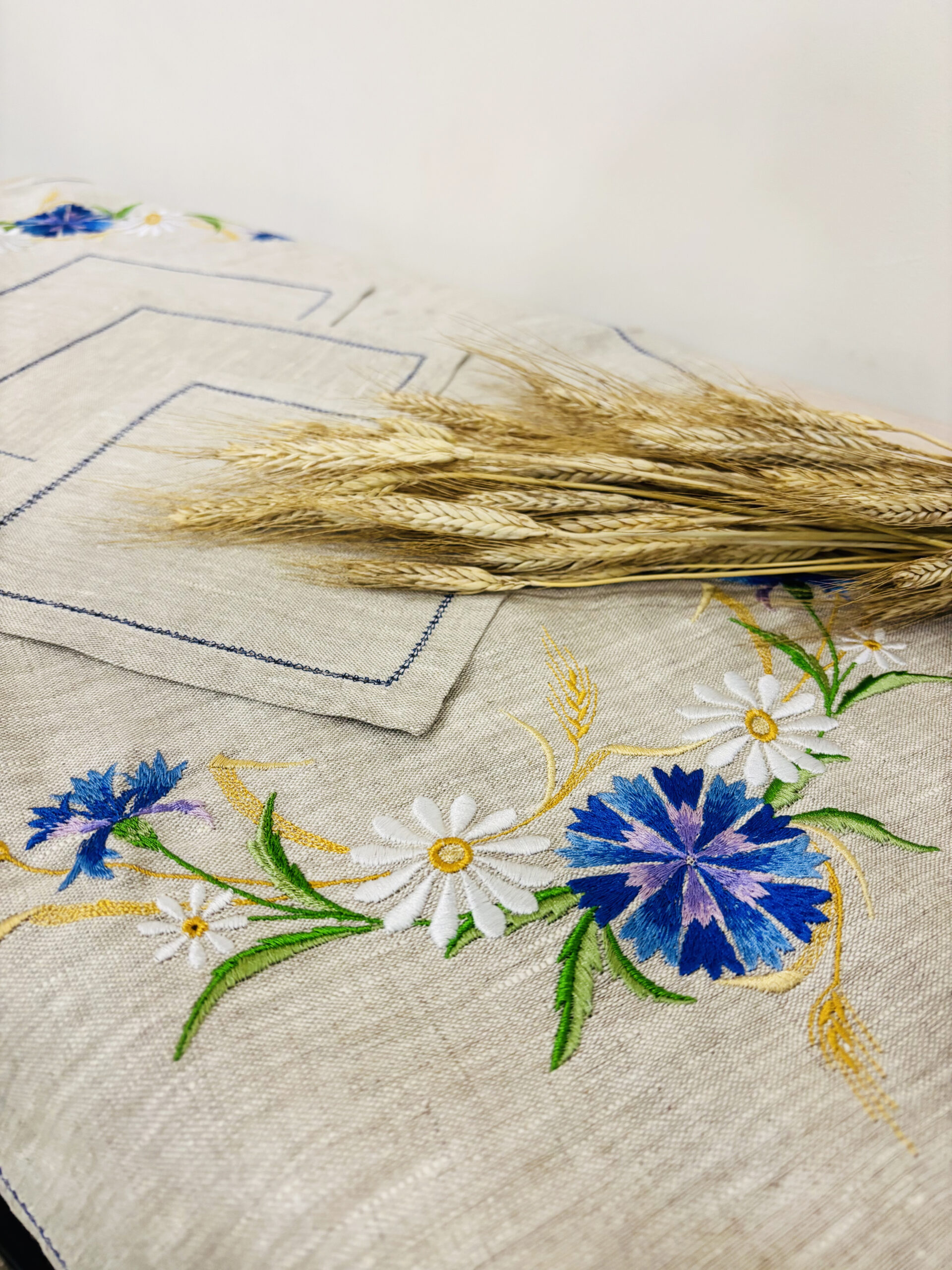 Нарядный комплект выполнен с использованием полевых цветов. Он придаст вашему дому свежесть и чистоту.