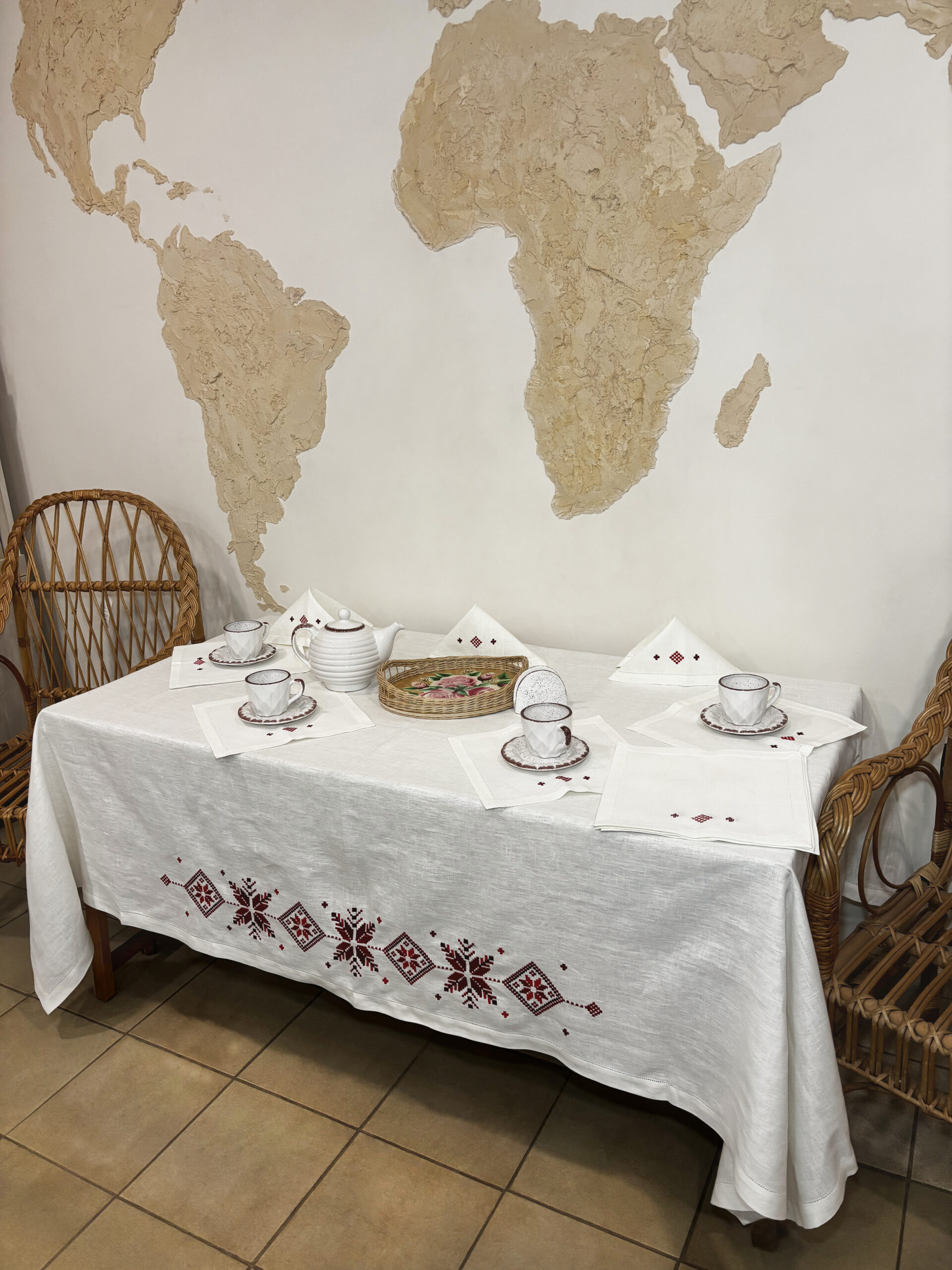 скатерть – 140см х 240см, салфетки (12шт) – 30см х 30см